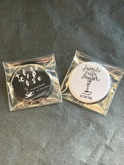 当店のロゴをあしらった、オリジナル缶バッジの2個セットです。